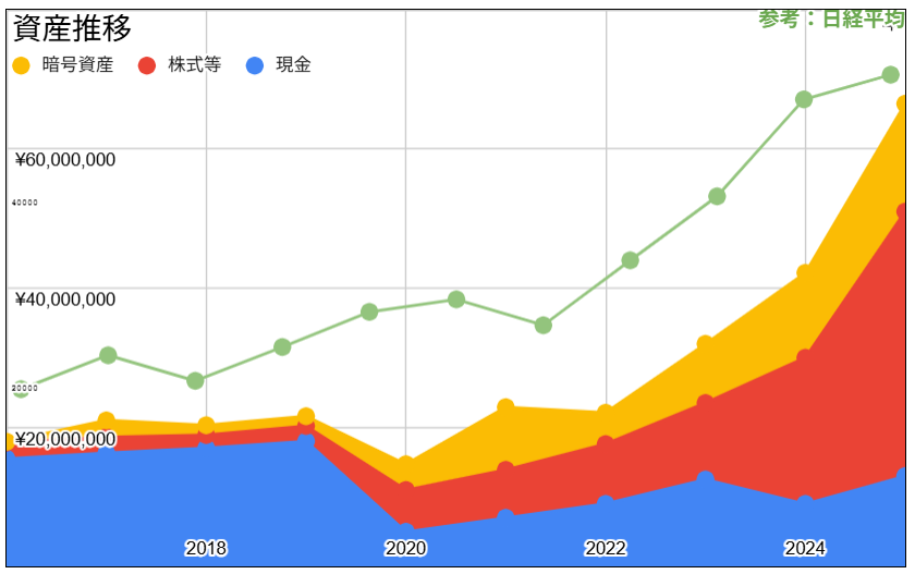米国株が増えている時期もあれば、暗号資産比率が高いときもありました。