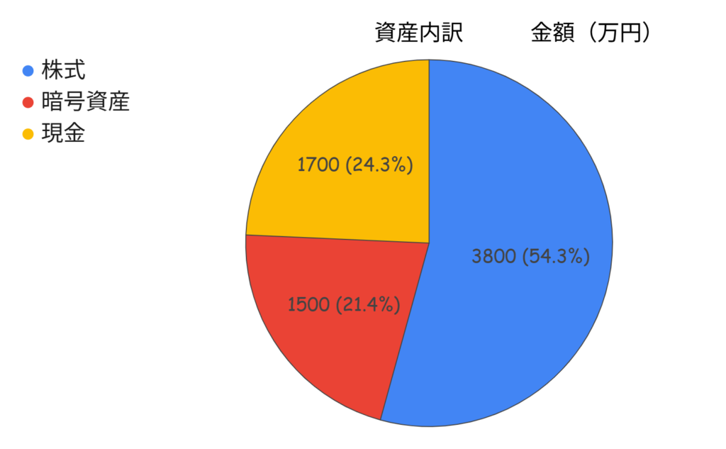 我が家の資産ポートフォリオとしては、「株式中心+現金+暗号資産」で構成しています。株式を中心にしつつも現金も一定割合(約1/4)で保有しています。